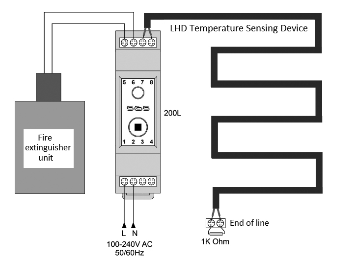200L mikro yangın kontrol paneli, lineer ısı algılama kablosundan (LHD) veya yangın algılama hattına bağlı termostatlardan alınan bilgileri değerlendirir ve bir yangın durumu oluştuğunda söndürme hattına bağlı yangın söndürücü ünitelerini (aerosol gazlı söndürücüler veya özel piroteknik vana yardımıyla basınçlı tüplü söndürücüler) otomatik olarak devreye sokabilen, küçük alanlarda kullanıma uygun, raya monte minyatür yangın kontrol panelidir.
